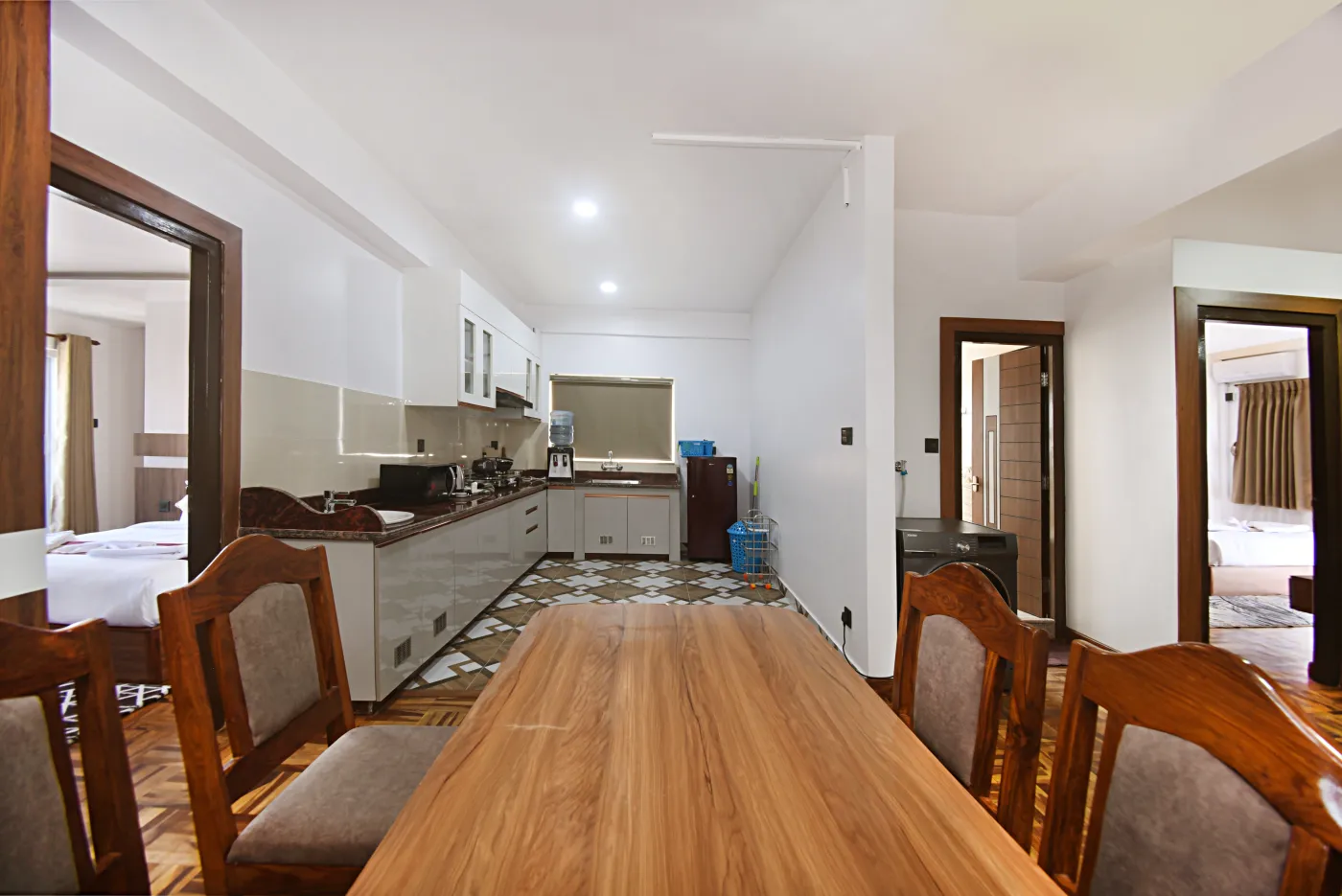 Ideal for families or small groups, this bright and cozy apartment offers two bedrooms, a living room with sofa bed, and two bathrooms. Bedrooms include king-size and twin beds for up to five guests. Enjoy a fully functional kitchenette, air-conditioning, WiFi, and flat-screen TV. Modern decor and a calm atmosphere make it a great option for longer stays.