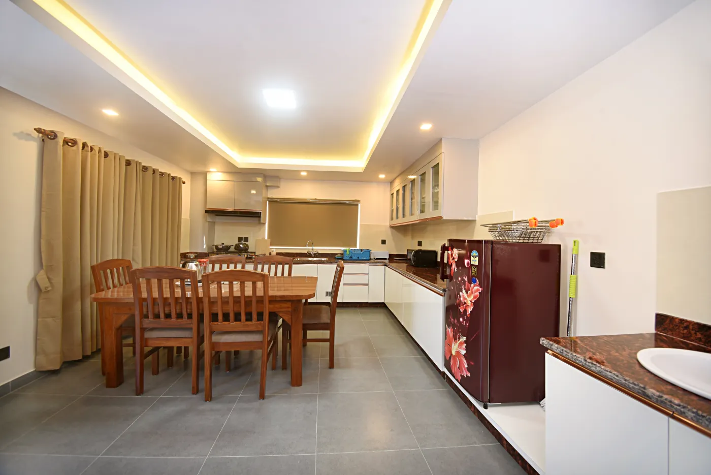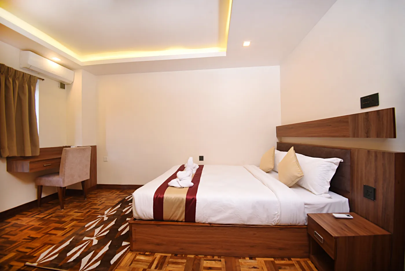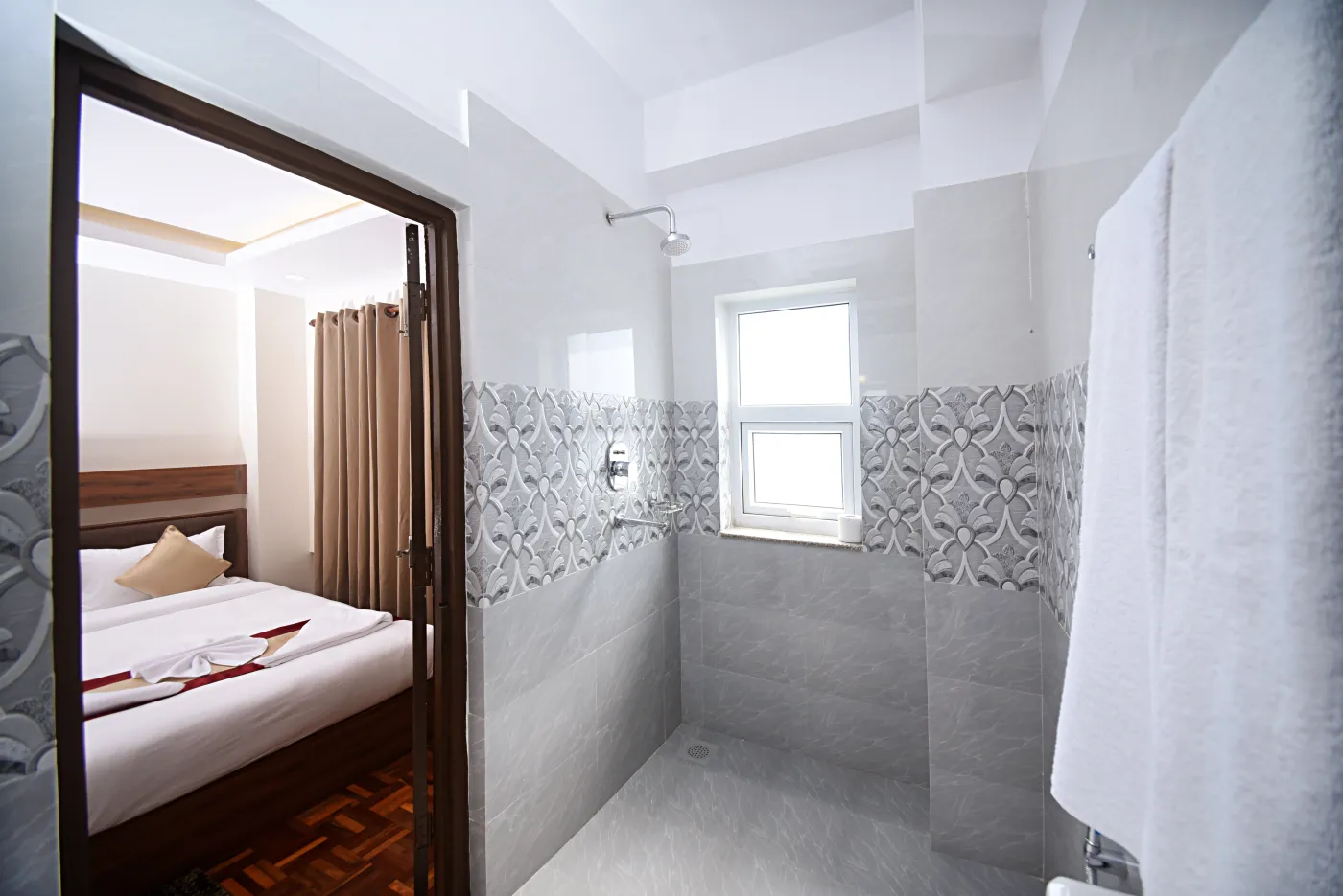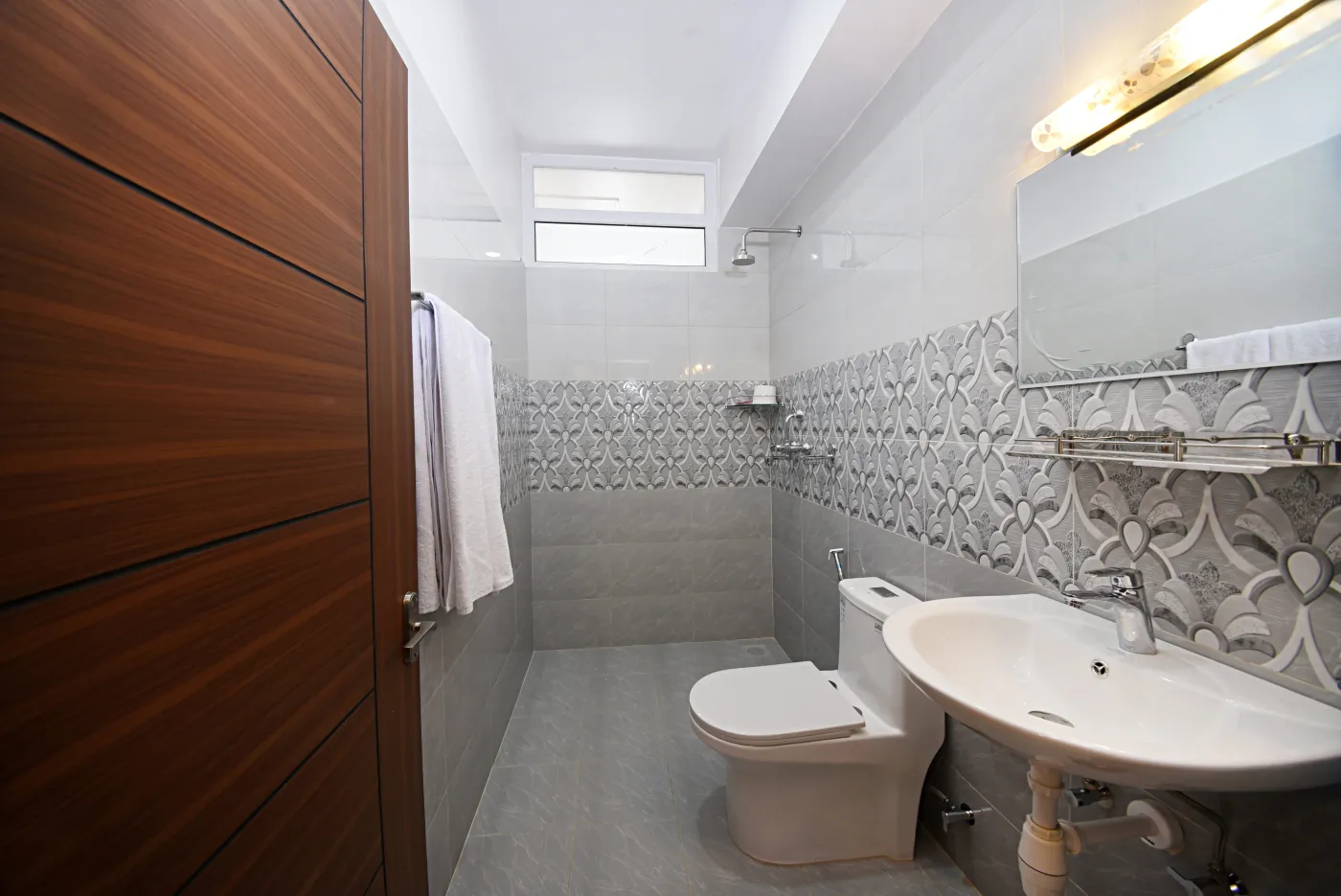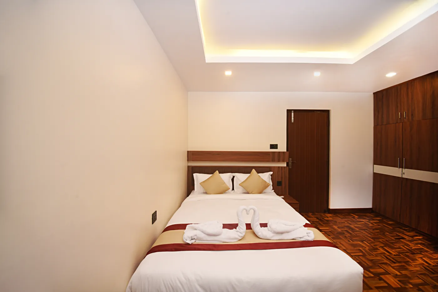 Perfect for large families or groups, this spacious 3BHK apartment features three private bedrooms, four modern bathrooms, and a large living room with two sofa beds. Each bedroom includes a king-size bed and additional twin beds for flexibility. Enjoy the private balcony with city views, a fully equipped kitchen, microwave, tea/coffee maker, flat-screen TV, free WiFi, and air-conditioning. Designed for comfort and convenience — your home away from home in Kathmandu.